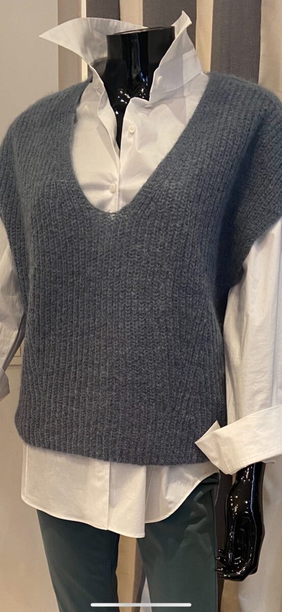 Pull sans manches bleu gris mohair